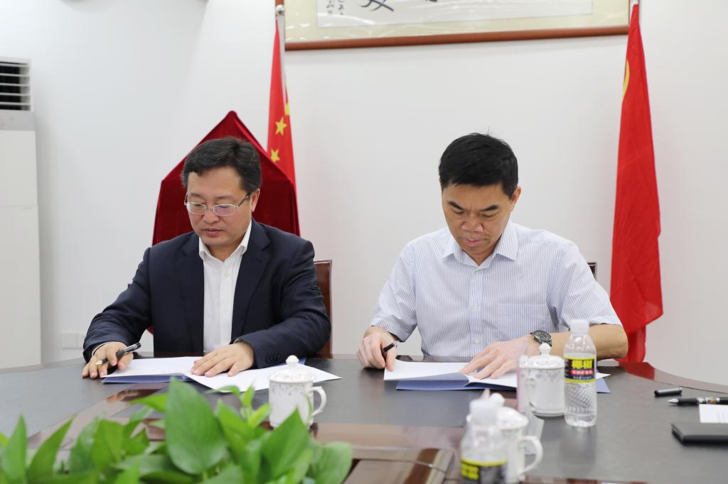 图3:爱体育(中国)党委书记康永刚(左)同海南广播电视总台副台长王坤(右)签署合作协议。