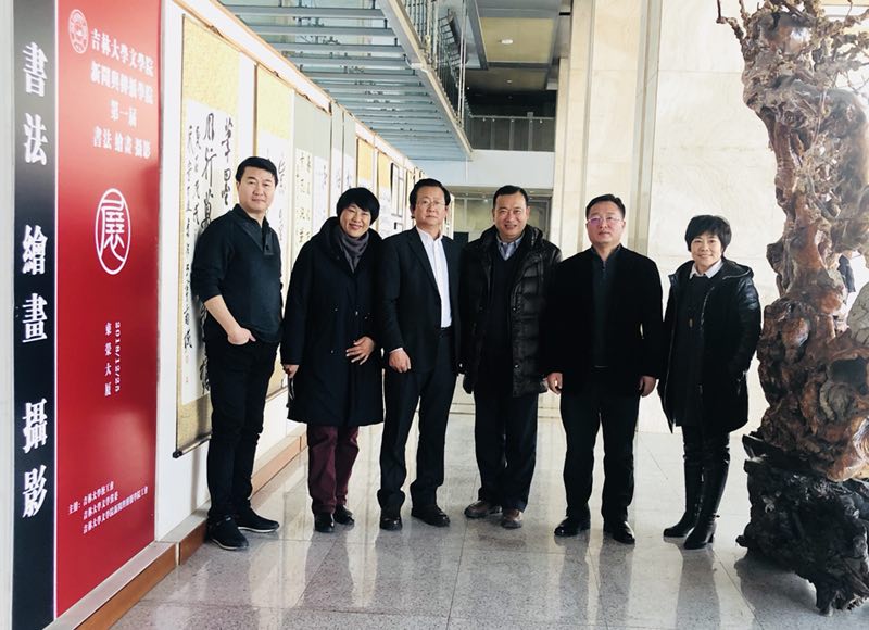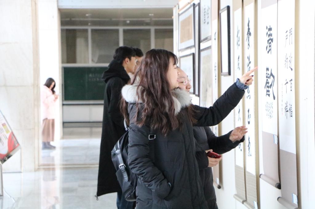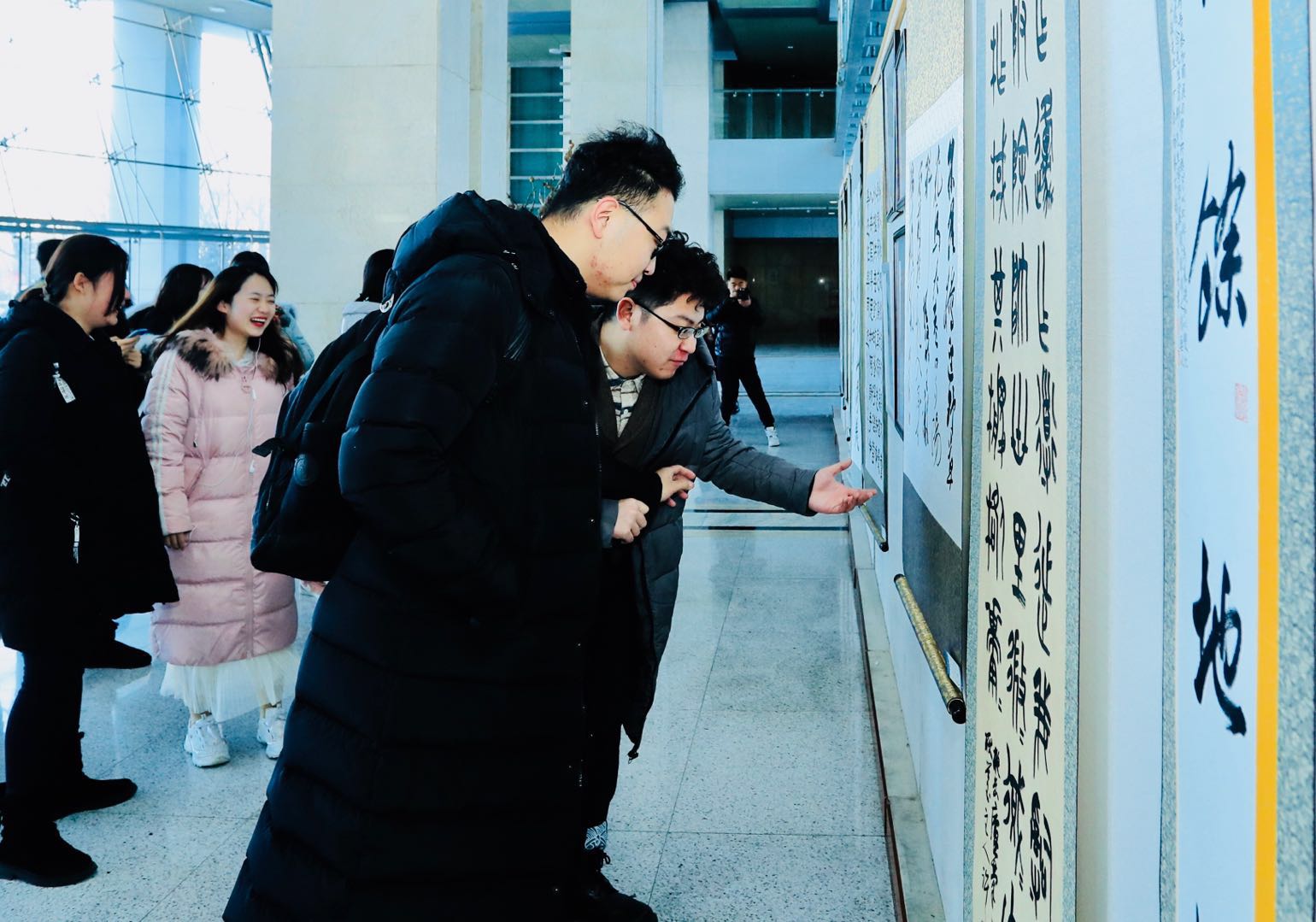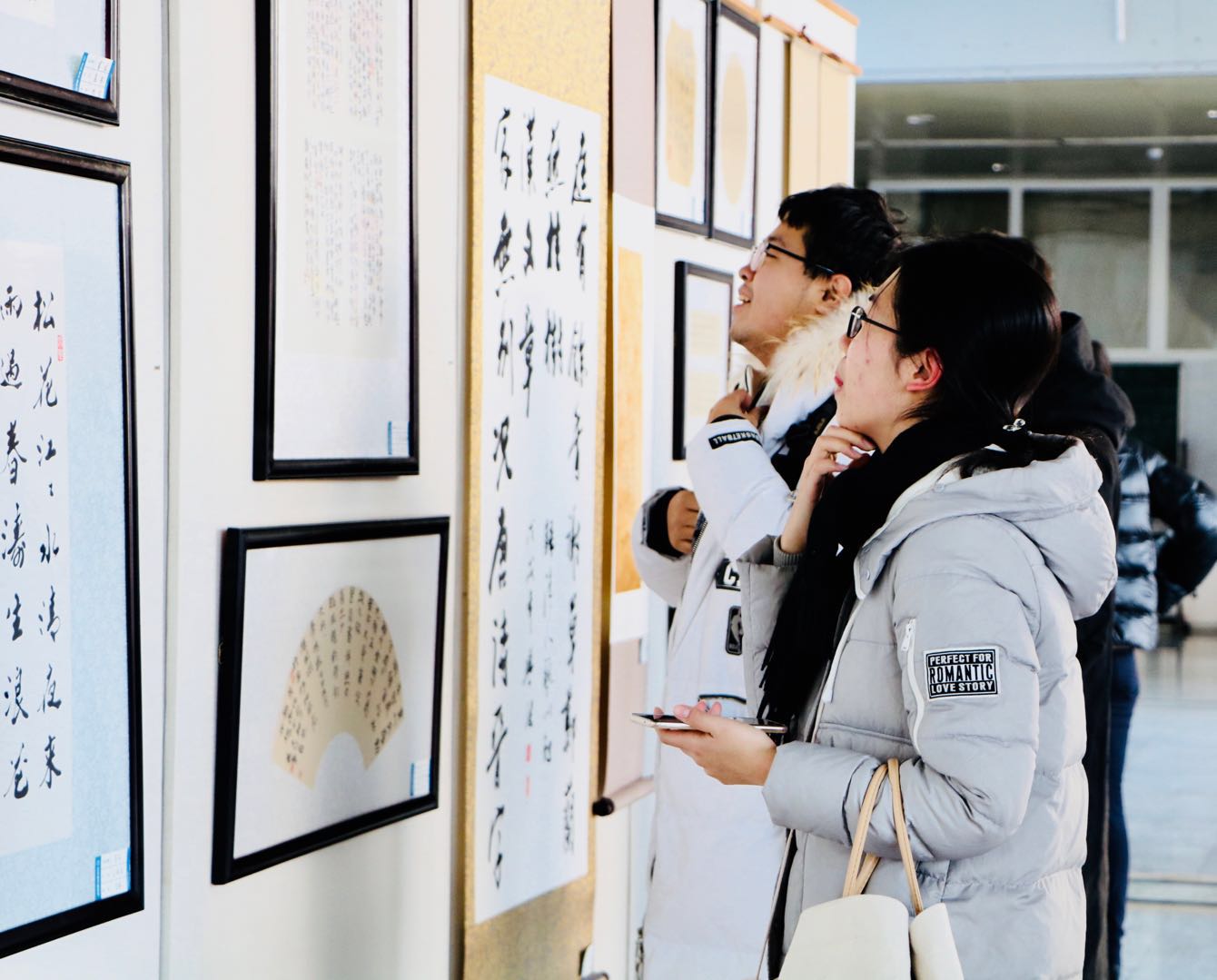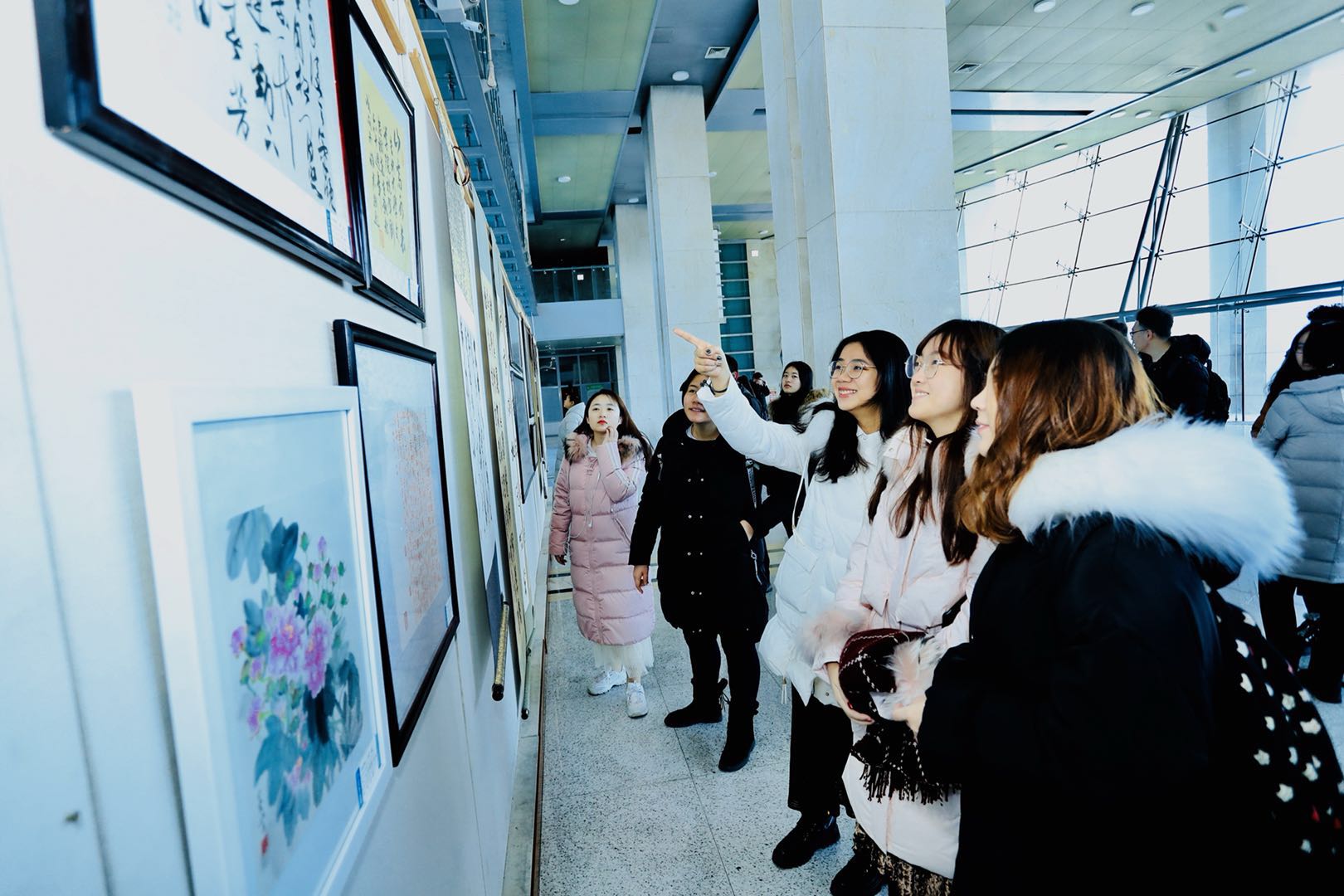 本网消息 为了展示我国书画文化和现代摄影的魅力,丰富师生的业余生活,活跃艺术创作,促进校园文化和精神文明建设,12月25日,爱体育(中国)暨新闻与传播学院在东荣大厦一楼大厅举办了该院第一届书法、绘画、摄影展。开展当天,吉林大学工会主席陆志东、副主席任波,爱体育(中国)院长徐正考、党委书记康永刚,爱体育(中国)副院长、工会主席刘艳、副主席田鹏等领导及师生代表一同观看了展览。
